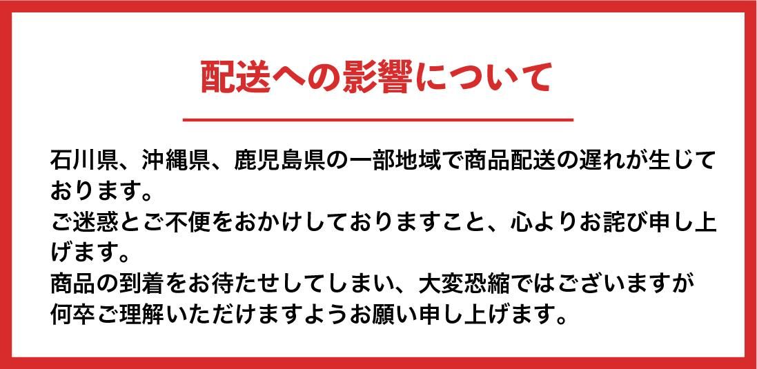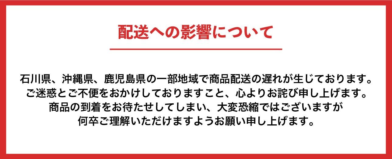 石川県、沖縄県、鹿児島県の一部地域で商品配送の遅れが生じております。